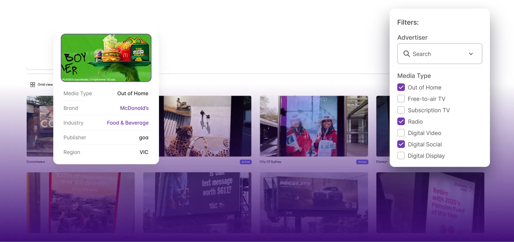 Monitor ads across brands, channels, regions and platforms to uncover shifts that impact your bottom line.